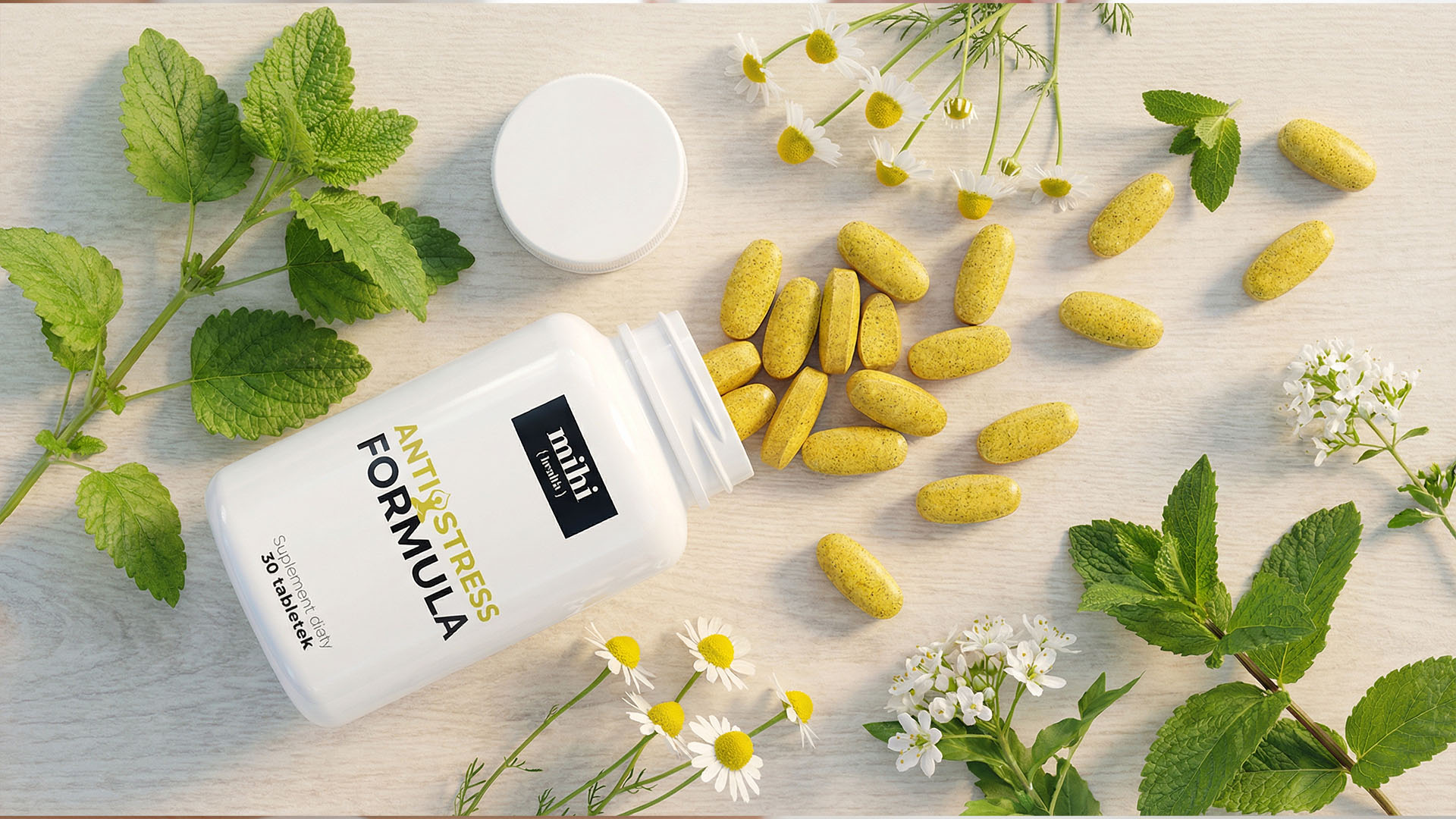 węglan wapnia; substancja wypełniająca: celuloza mikrokrystaliczna; kwas L-askorbinowy (witamina C); oktan D-alfa-tokoferylu (witamina E); wyciąg z kory magnolii lekarskiej (Magnolia officinalis); tlenek magnezu; sproszkowane owoce cytryńca chińskiego (Schisandra chinensis); tlenek cynku; D-pantotenian wapnia; amid kwasu nikotynowego; substancje przeciwzbrylające: sole magnezowe kwasów tłuszczowych; hydroksypropylometyloceluloza; ryboflawina; chlorowodorek tiaminy; siarczan miedzi; bioflawonoidy cytrusowe; substancja przeciwzbrylająca dwutlenek krzemu; chlorowodorek pirydoksyny (witamina B6) kwas pteroilomonoglutaminowy; D-biotyna; cyjanokobalamina (witamina B12)