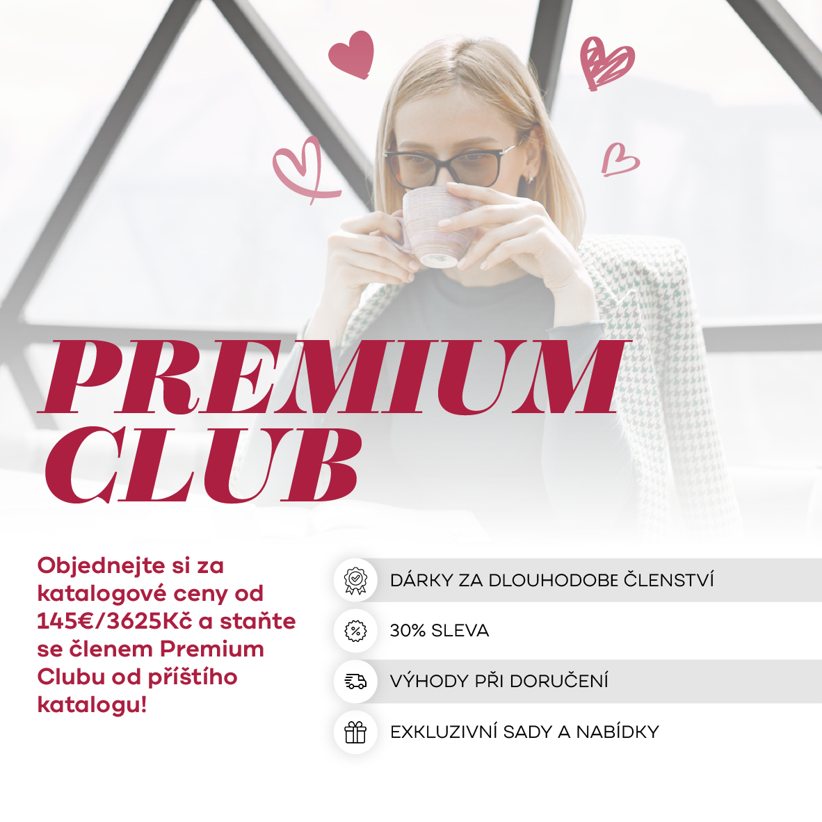 Udržujte si členství v Premium Clubu* splněním požadavku na PV ve výši 100EUR/2500Kč nebo více v každém katalogovém období.